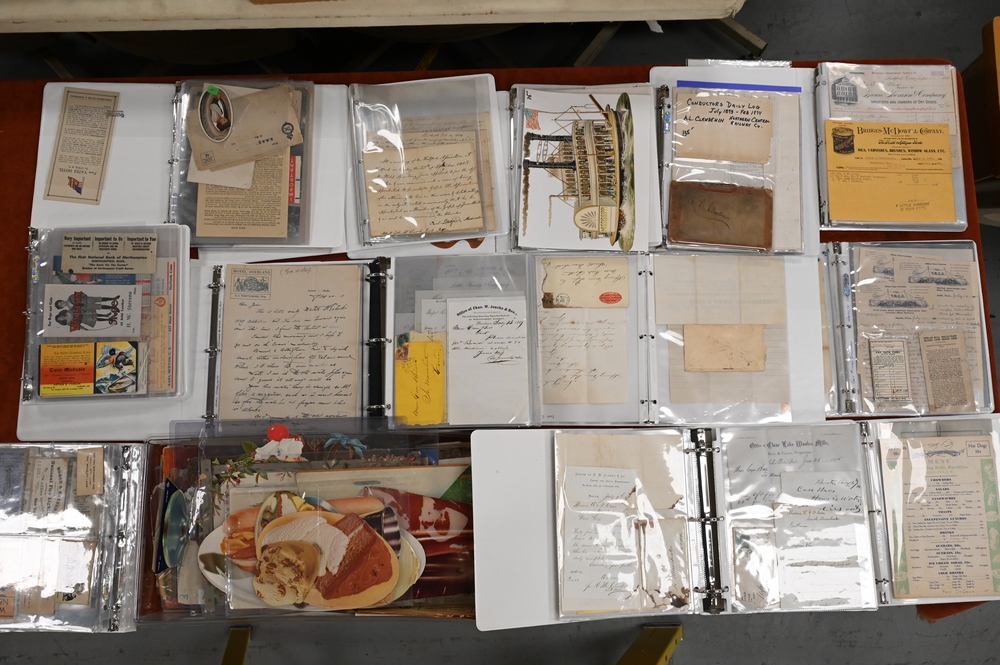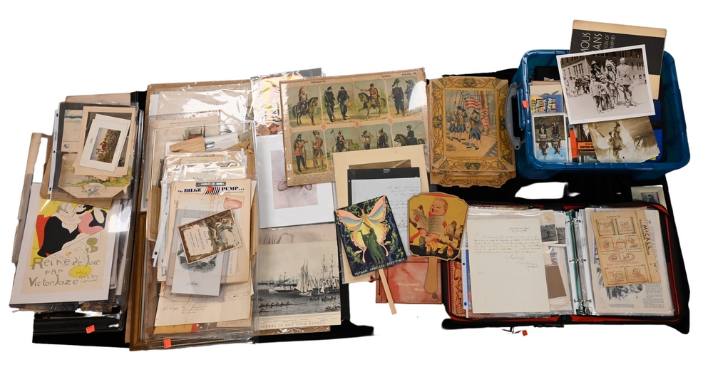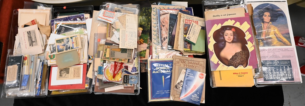 Large Lot of Ephemera, to include trade cards, die cuts, letterheads, invoices, aerospace and railroad papers along with many other topics, most in binders.