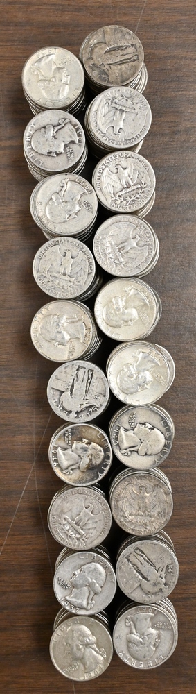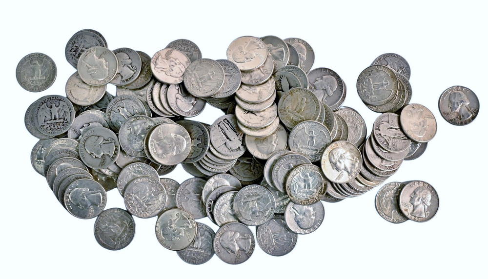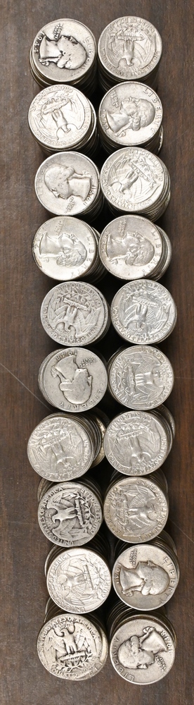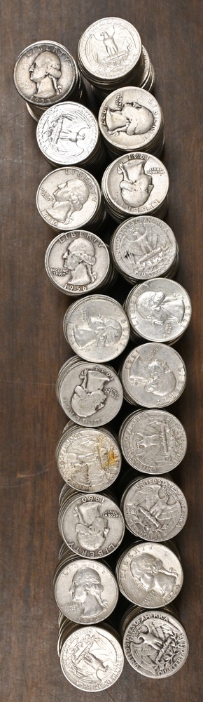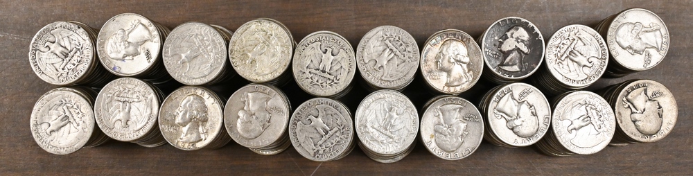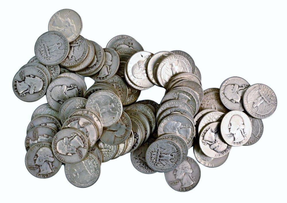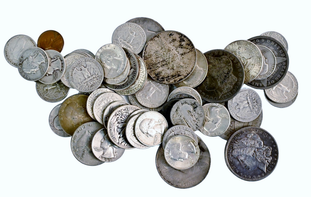 Large lot of Mixed US Silver Coins, to include 7 Silver Half Dollars, 2 40% Half Dollars, 40 Washington Quarters, 2 Peace Silver Dollars, 5 Morgan Silver Dollars.