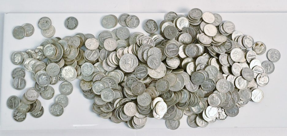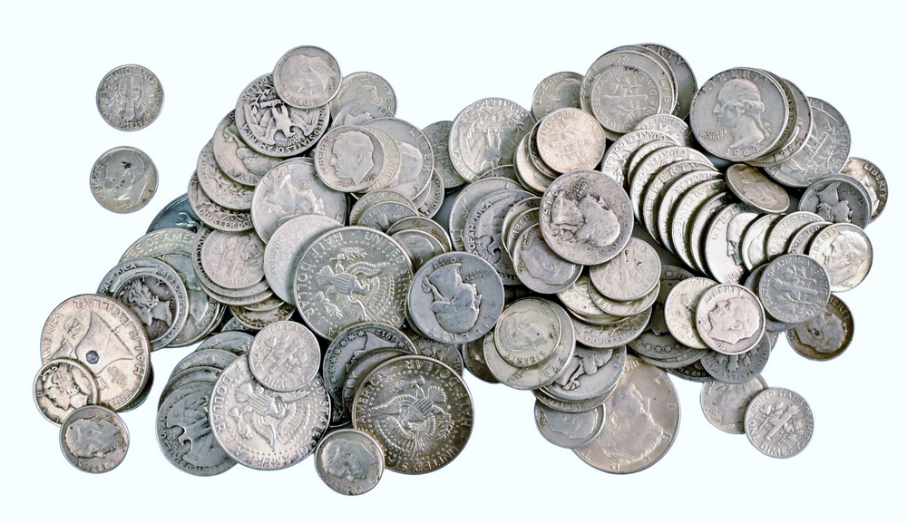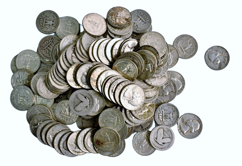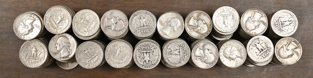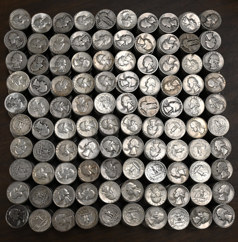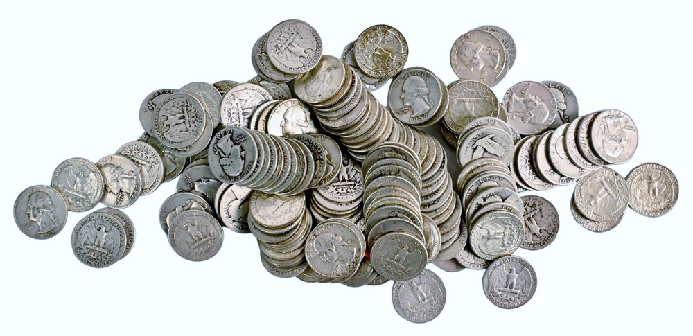 Large lot of Mixed US Silver Coins, to include 7 Silver Half Dollars, 2 40% Half Dollars, 40 Washington Quarters, 2 Peace Silver Dollars, 5 Morgan Silver Dollars.