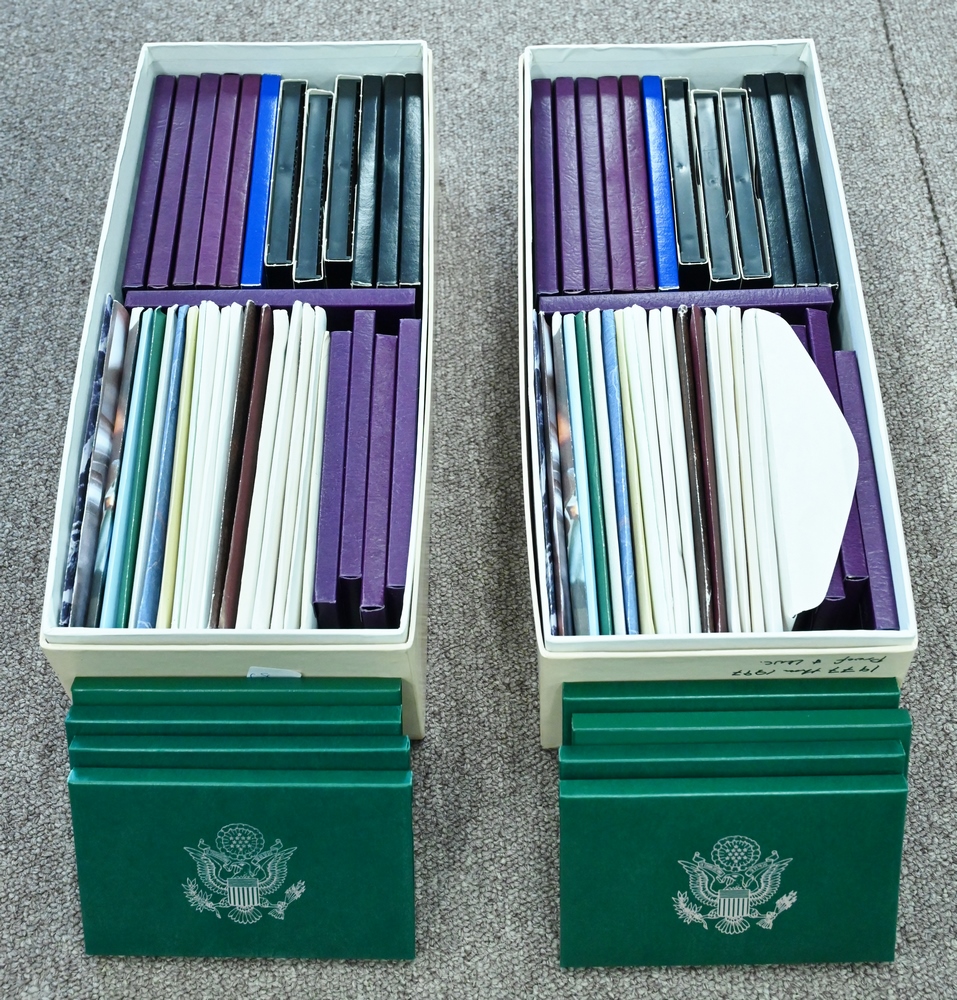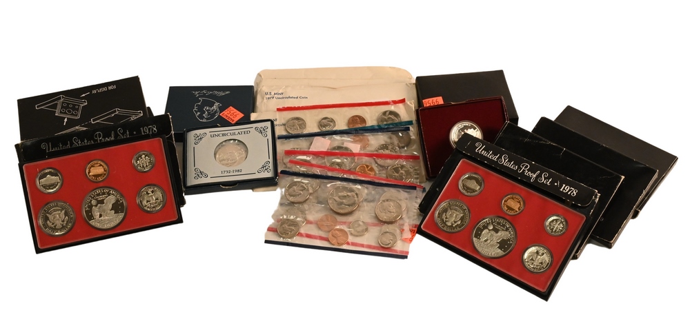 Large lot of Proof Coin Sets, to include 9 Proof Sets and 6 Mint Sets, proof sets to include, 2 – 1978; 2 – 1979; 2 – 1980; 1 – 1981; 2 – 1982; mint sets to include, 2 – 1979; 2 – 1980; 2 – 1981; along with 4 silver medals.
