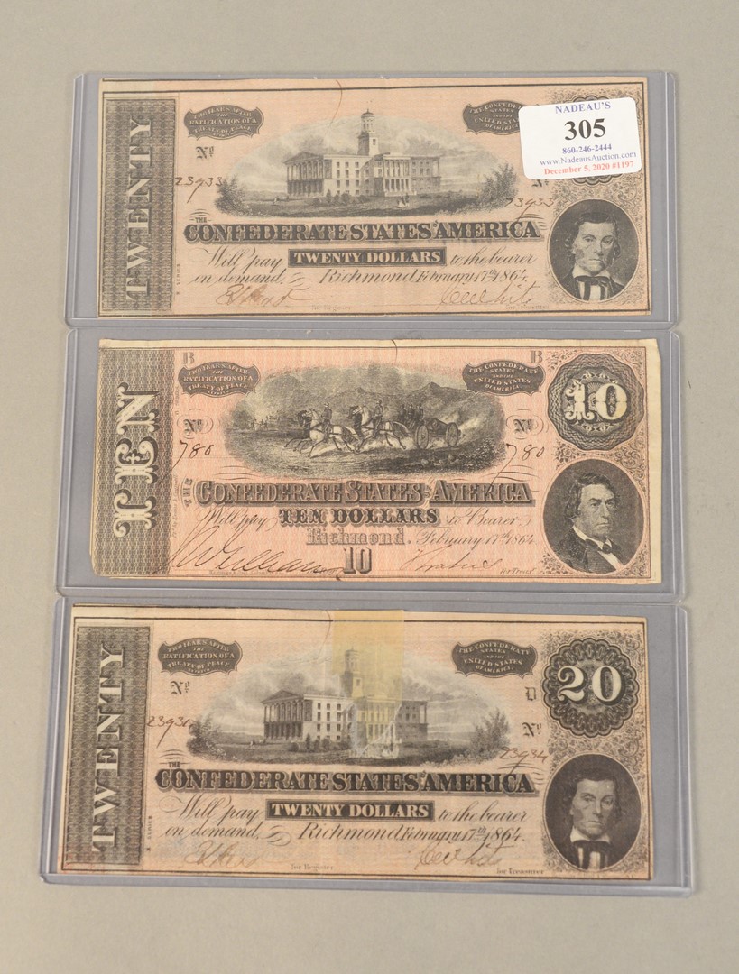 Group of Four Small Bank Notes, to include two 25 cent fractional currency 1863 bank notes; one 50 cent fractional currency 1875 bank note along with one 50 cent Mississippi 1864 note.