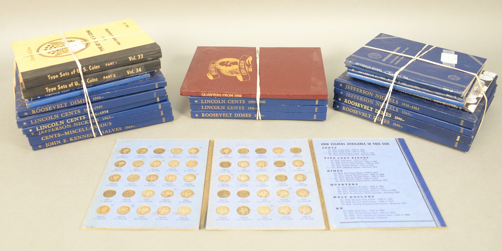 24 Albums Coin Albums, ten assorted coin albums (many are empty) along with 5 assorted albums with some 90% and 9 assorted albums with some 90% Indian, Buffalo, Jefferson, Roosevelt and Washington quarters.