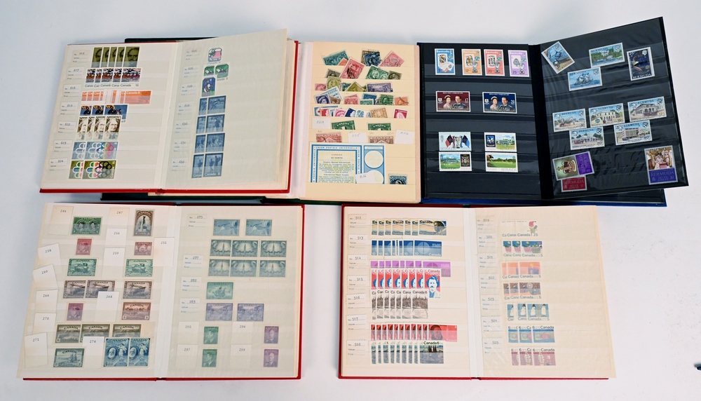 Small Grouping of Worldwide Foreign Stamps, to include an International Junior stamp album containing some United States stamps, along with some stock books containing Canada, Newfoundland, and British Colonies.
