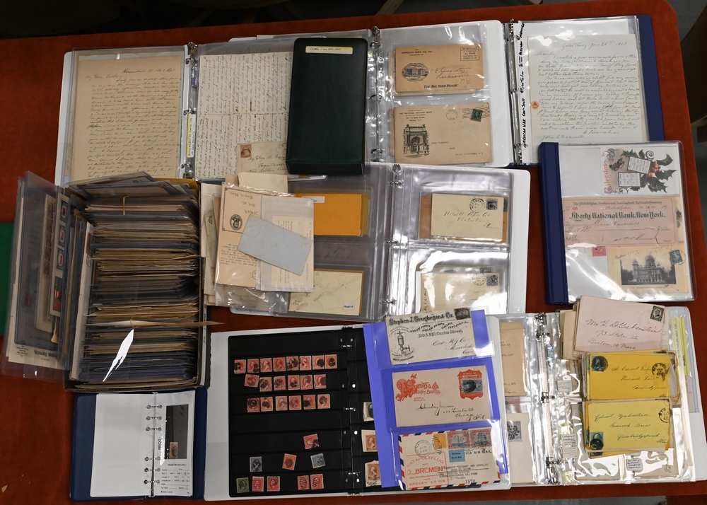 Grouping of Miscellaneous United States Stamps, to include covers, postcards, along with a few stamps; items include advertising, first day covers, submarine and ship covers, etc.
