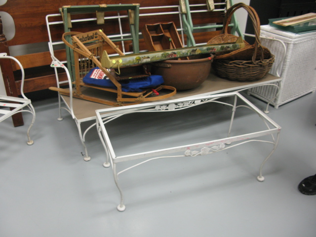 Wrought iron sofa, armchair and table, no glass , no cushions