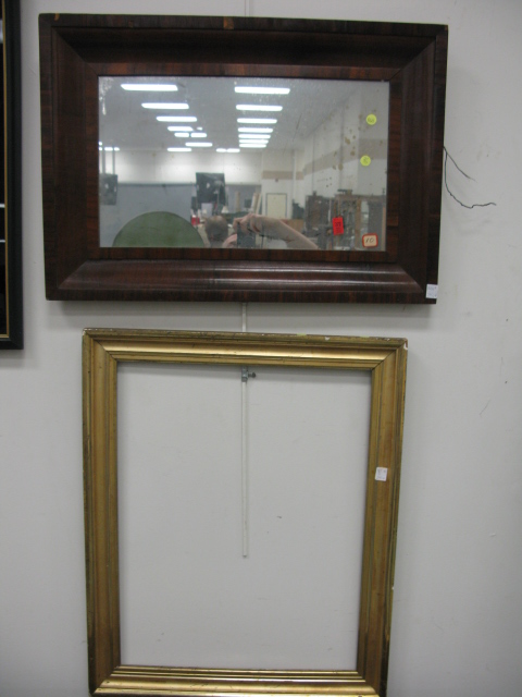 Three piece lot to include ogee mirror, gilt frame and print