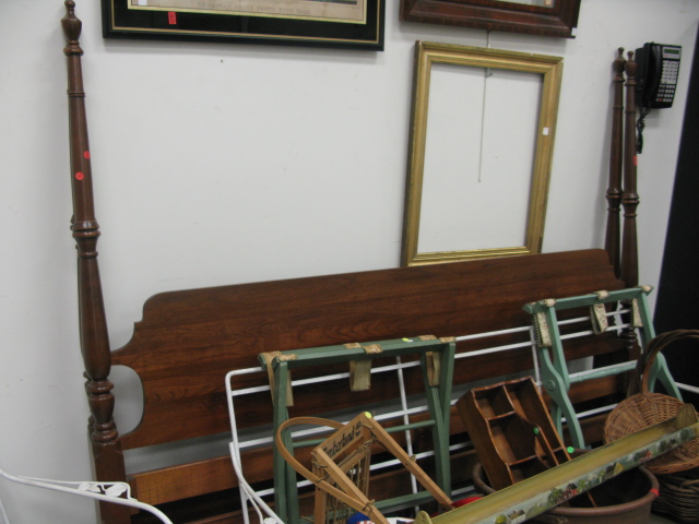 Cherry chest, double size canopy bed and night table
