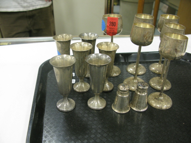 14 pieces sterling silver, shot glass and small cordials from the estate of Broadway actress Leta Gold