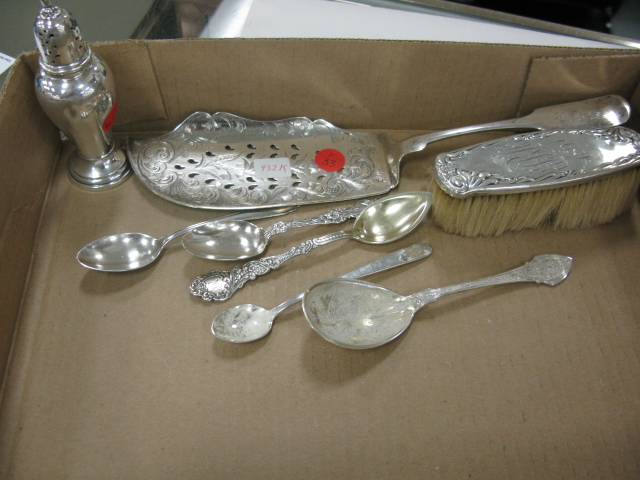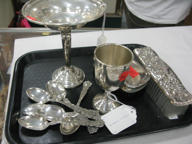 Sterling silver lot to include two brushes, compote, spoons etc