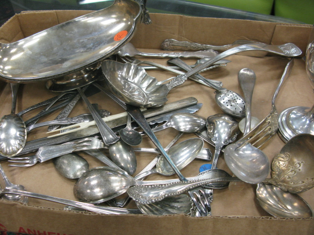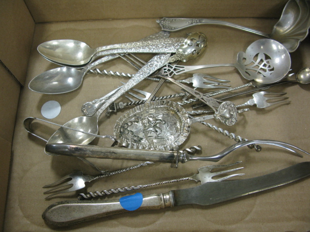 Box lot of silver cup and silver plated flatware