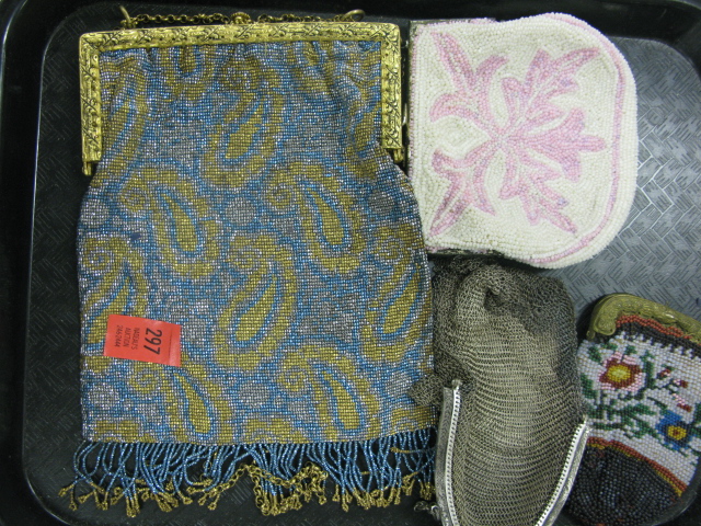 Box lot of three beaded handbags and one mesh handbag