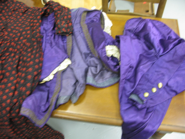 Victorian red and black dress and purple two piece suit