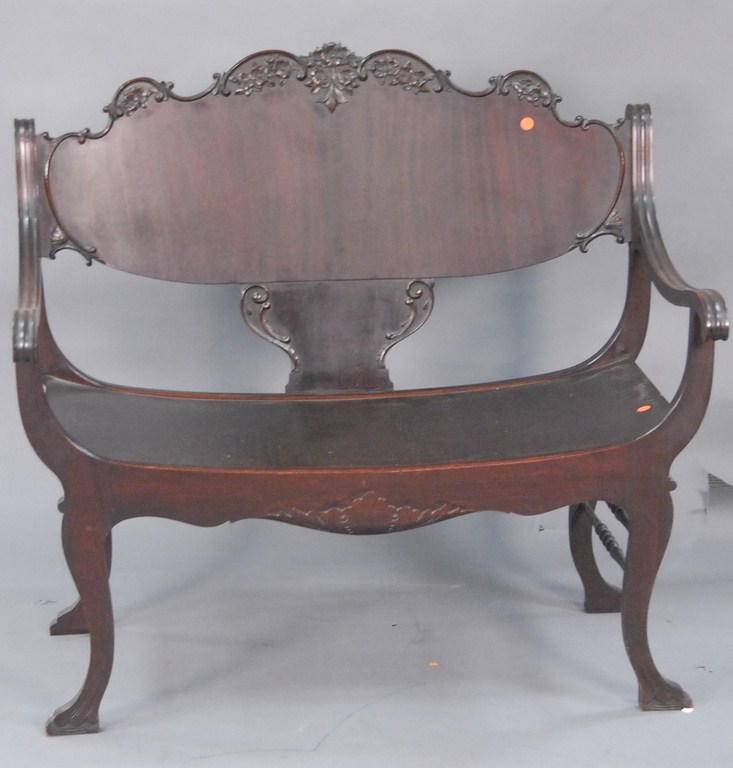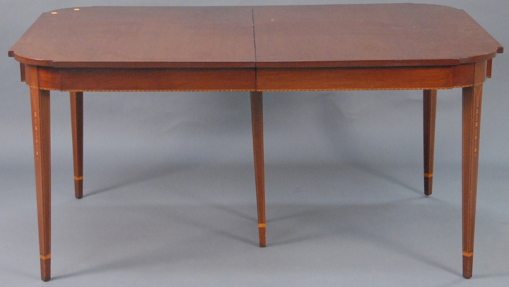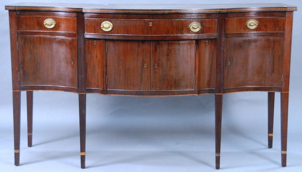 Signed Margolis Federal style mahogany sideboard having shaped top over three drawers over four doors and two bottle drawers on square tapered legs, written with paper label This sideboard is made for Mr. and Mrs. W. Kingsbury by Nathan Margolis Hartford 1919 some inlay missing, ht. 41 1/2, lg. 72, dp. 28.