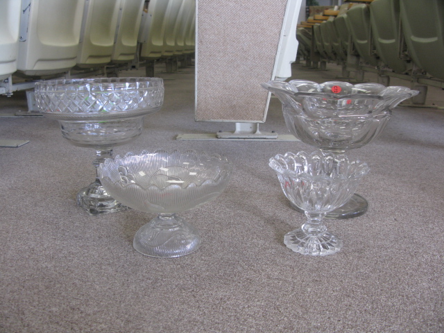 Four piece lot of compotes to include two sandwich glass, one Anglo Irish crystal, one as is