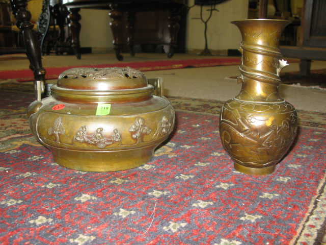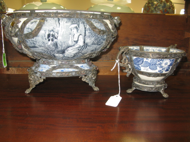Two piece lot of tureen with metal mounted and dish with metal mounted