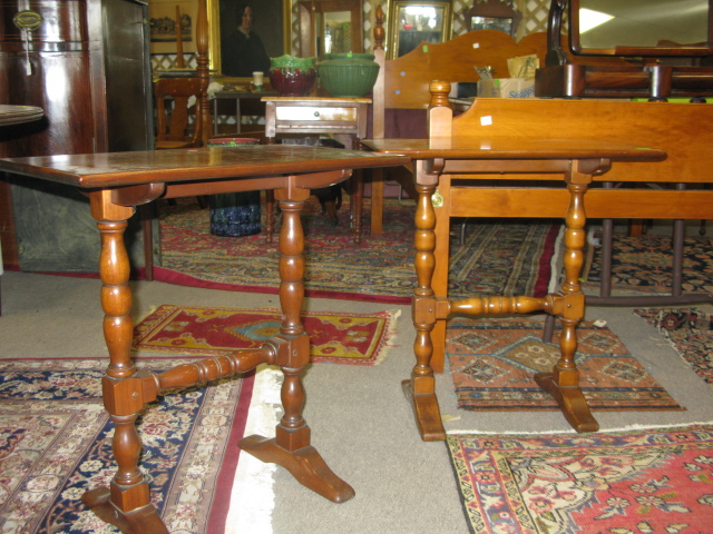 Oak console table with drawer, carved base and flip top signed Kittenger