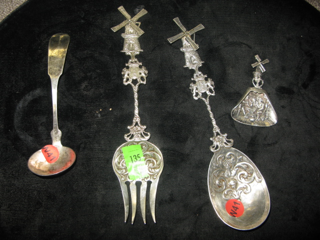 Four piece lot of Continental and coin silver, two with windmills on handles