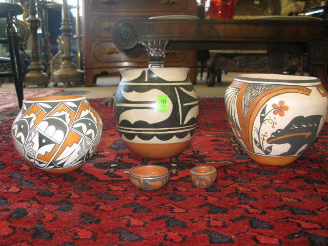 Five piece lot of Colima pottery, one signed D Patricio, one signed V. Garcia, two small signed C.A./S.D. and one signed Paulita Pacheco