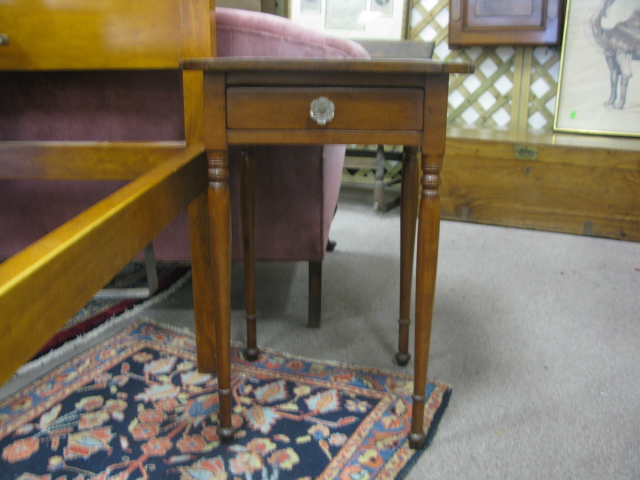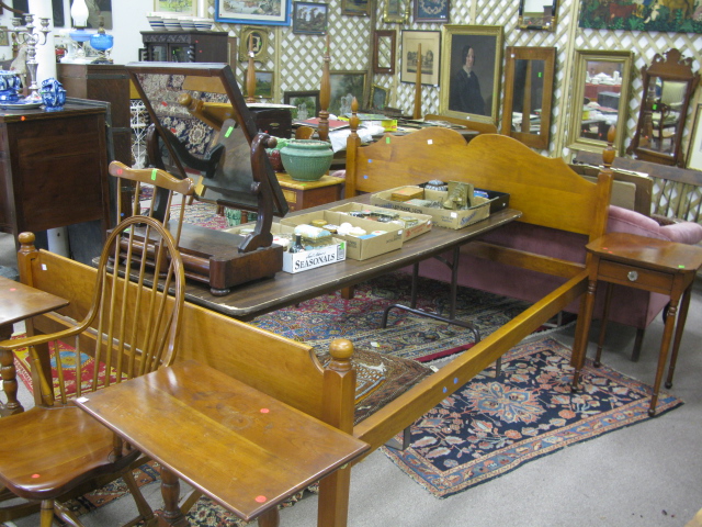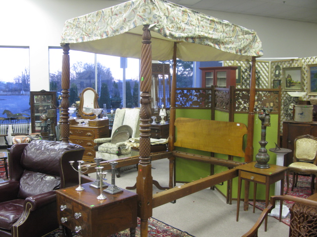 Federal four post double size bed with canopy top and carved posts, bottom legs replaced