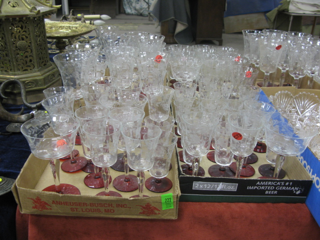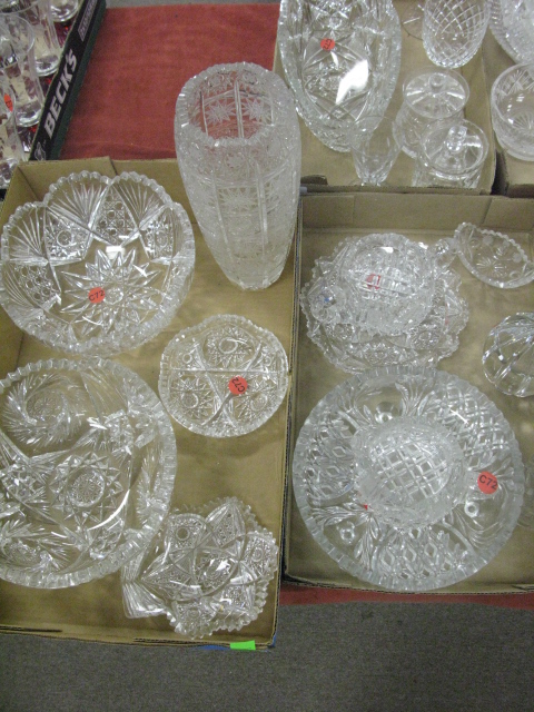 Three tray lots of cut glass including bowls, vases, sugar and creamer, small dishes, etc.