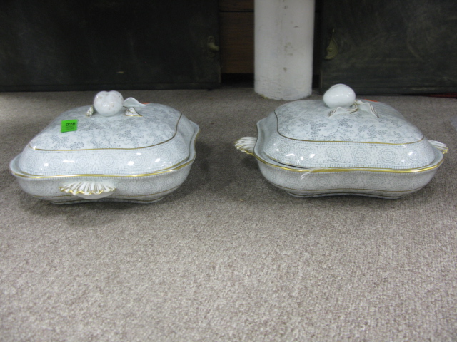 Pair of Royal Worcester covered square vegetable dishes, one repaired