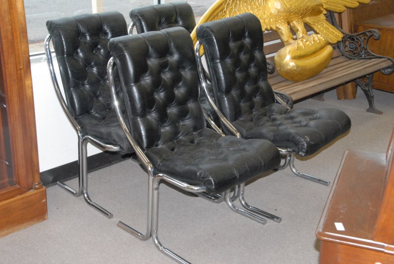 Set of 4 chrome chairs with tufted upholstery.