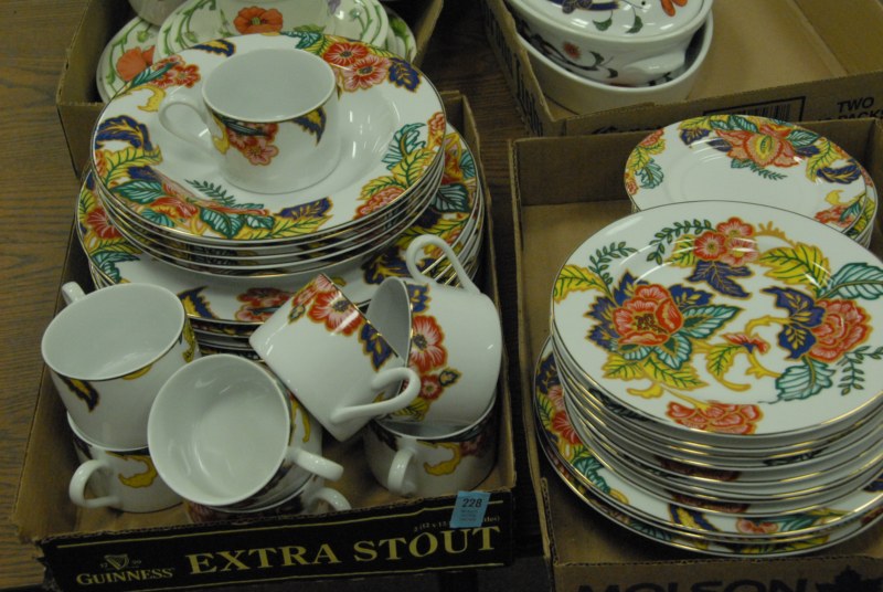 4 box lots partial set Vilaroy and Boch dishes, set of American Atelier dishes and 2 pc of Royal Worcester ovenware.