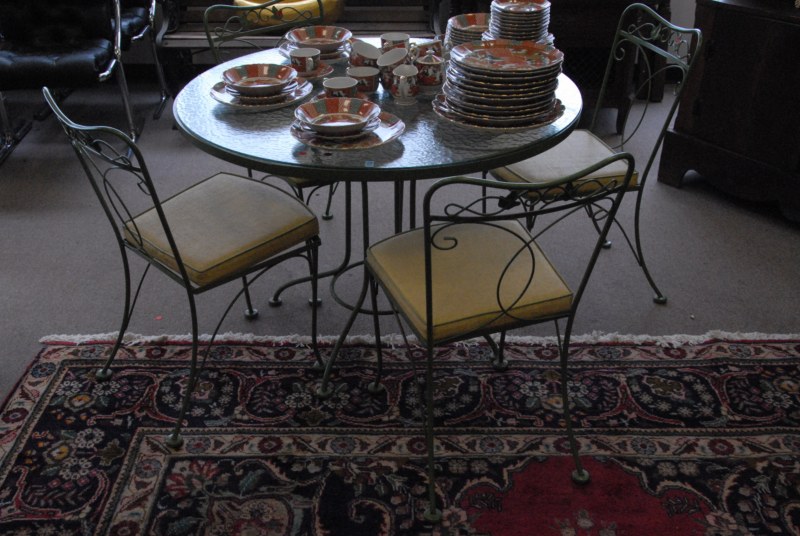 Iron outdoor glass top table and 4 chairs.
