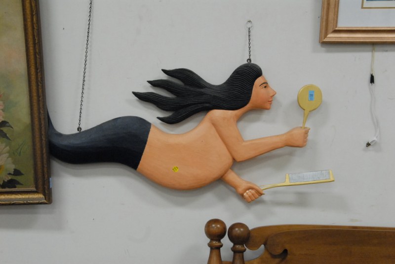 Carved wooded mermaid.