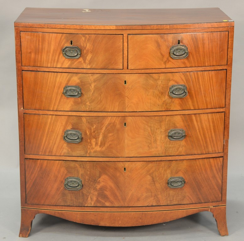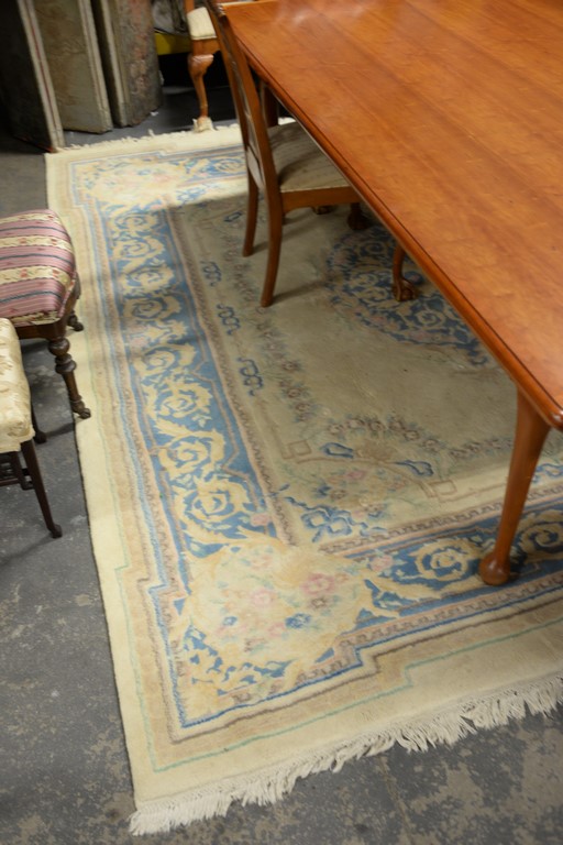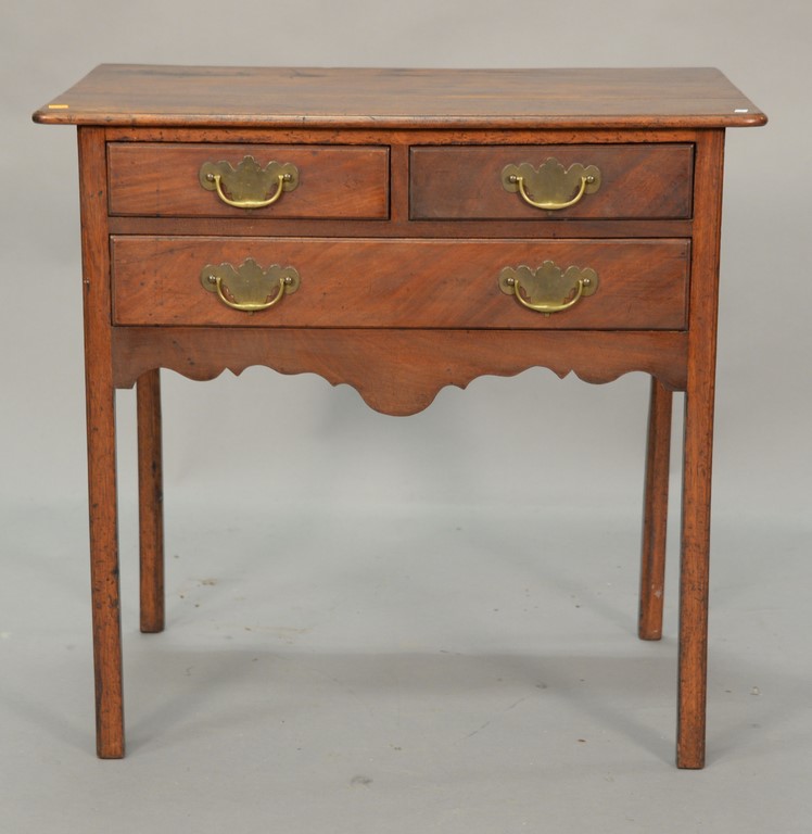 Cherry Queen Anne style dining / farm table and a set of eight cherry Chippendale style dining chairs with ball and claw feet chew mars on several feet. , ht. 30 in. top: 51 x 90