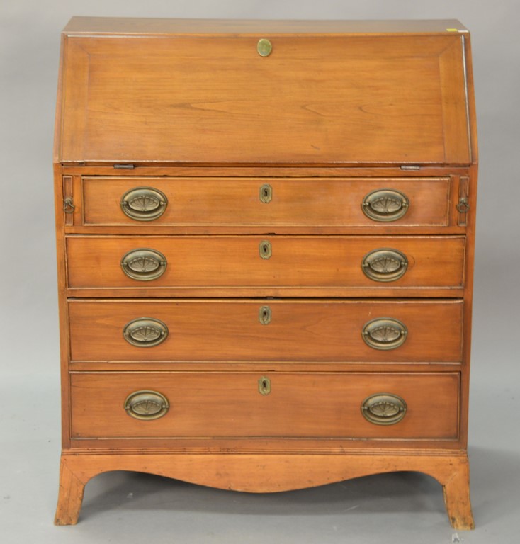 George II fruitwood and oak slant front desk. ht. 39 in. wd. 33 in.