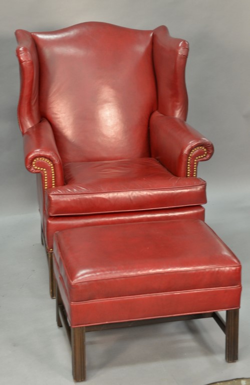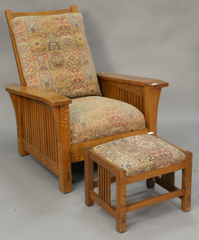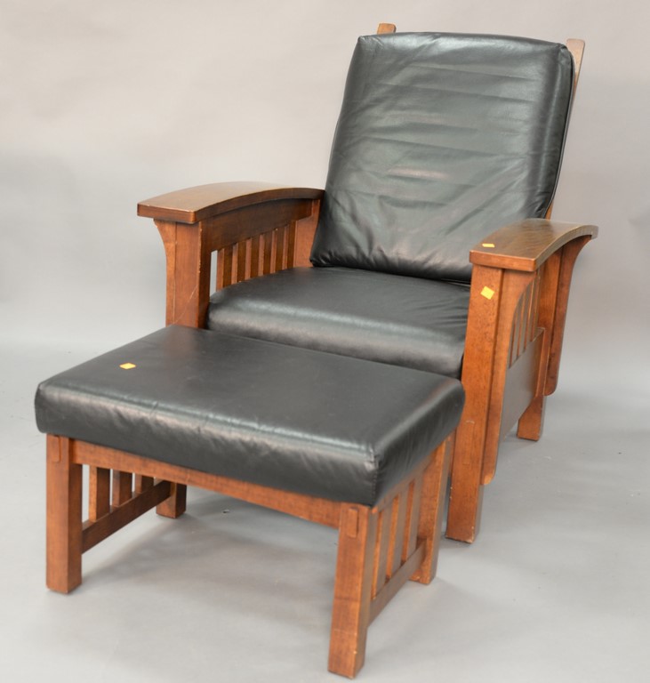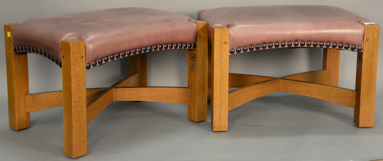 Pair of Stickley oak ottomans with leather upholstery. ht. 16 in. top: 17 x 24
