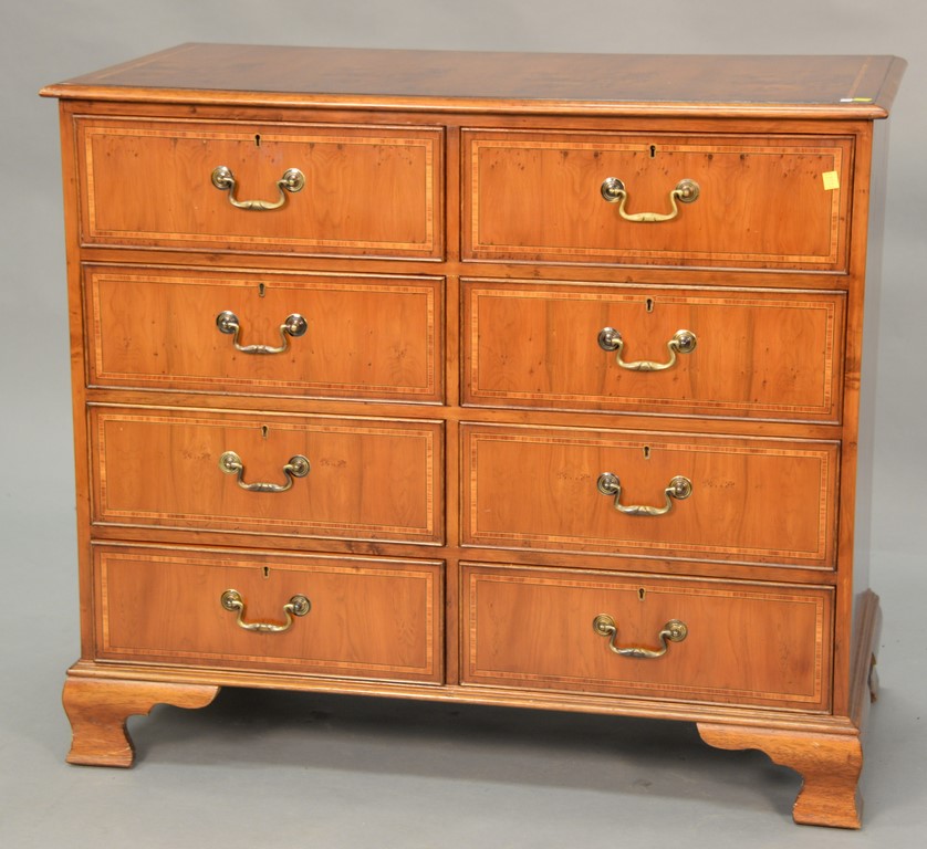Burlwood / Elm eight drawer chest. ht. 36 in. wd. 41 1/2 in. dp. 21 in.