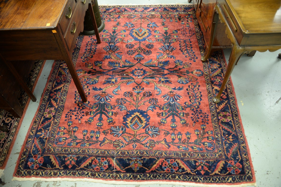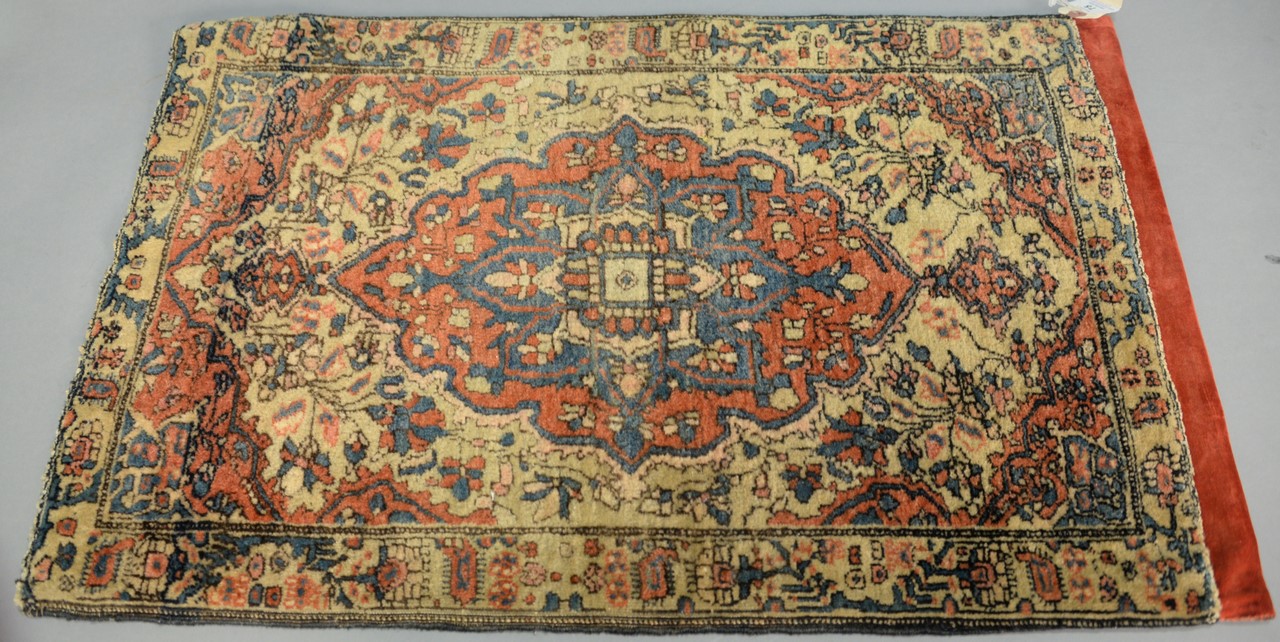 Sarouk Oriental mat excellent pile end fringes missing, 1’8 x 2’7.