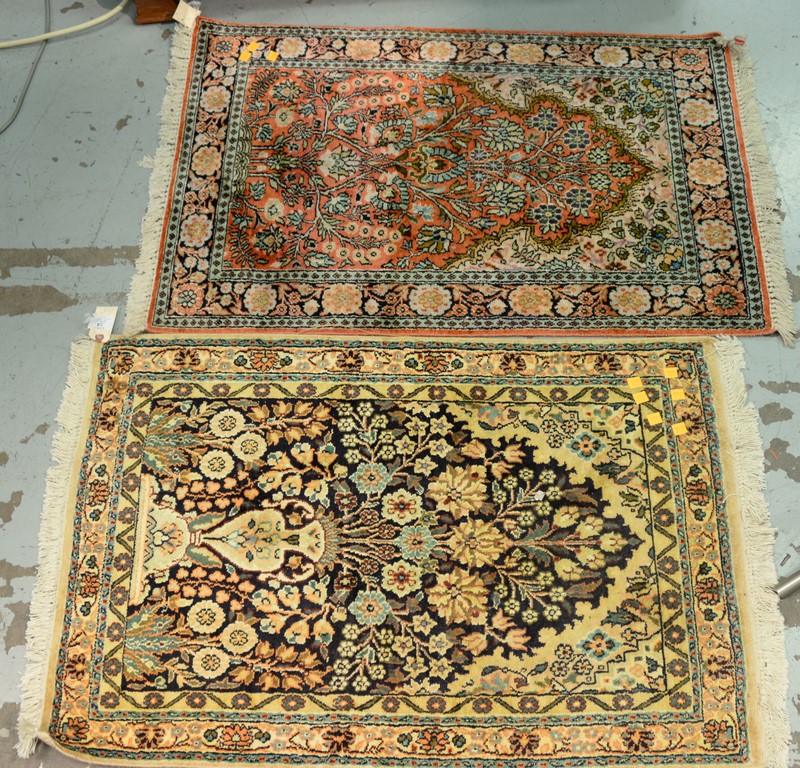 Two silk Oriental mats, 2′ x 3′ and 2′ x 3’3.