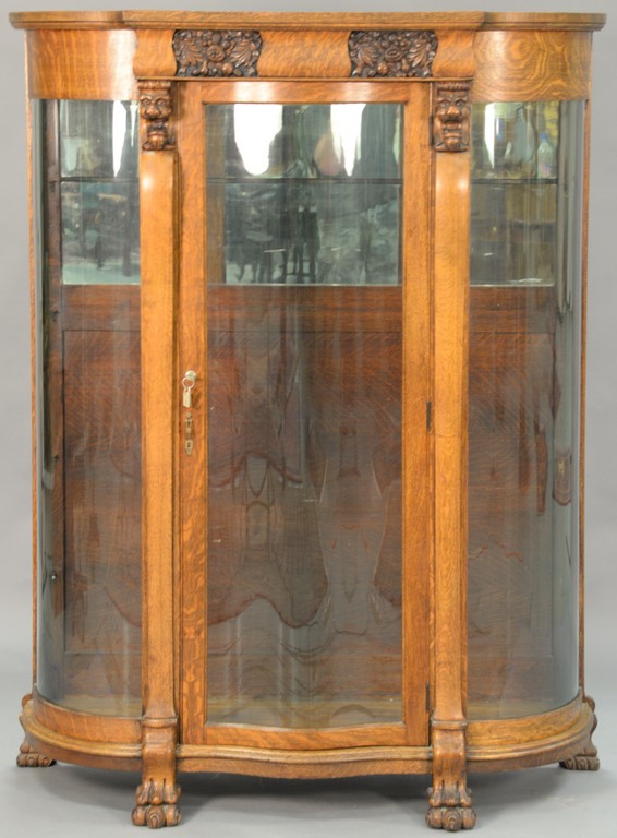 Oak Victorian china cabinet with serpentine door and bowed sides. ht. 69 in. wd. 53 in.