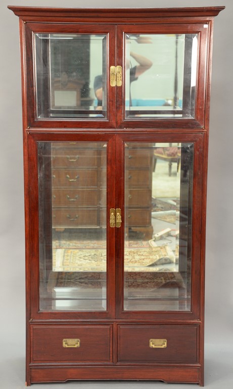 Chinese hardwood curio cabinet, ht. 74 in. wd. 36 in. dp. 16 in.