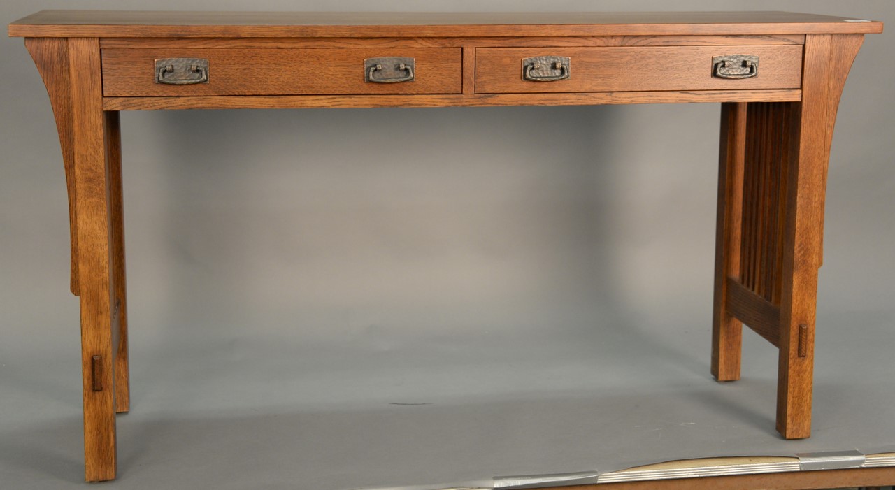 Stickley oak hall table having two drawers. ht. 28 1/2 in. wd. 54 in. dp. 16 in.