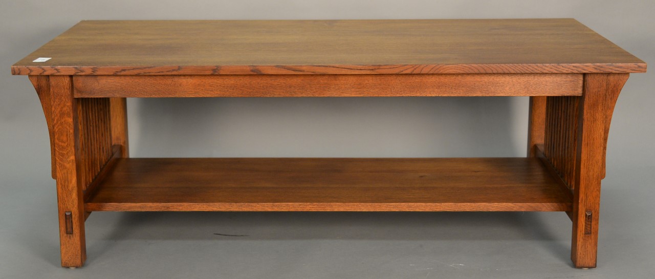 Stickley oak coffee table. ht. 17 in. top: 48 x 22