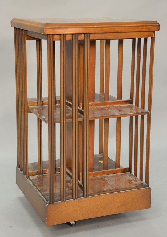 Inlaid revolving book case, late 20th century, ht. 21 1/2 in. top 18 x 18.