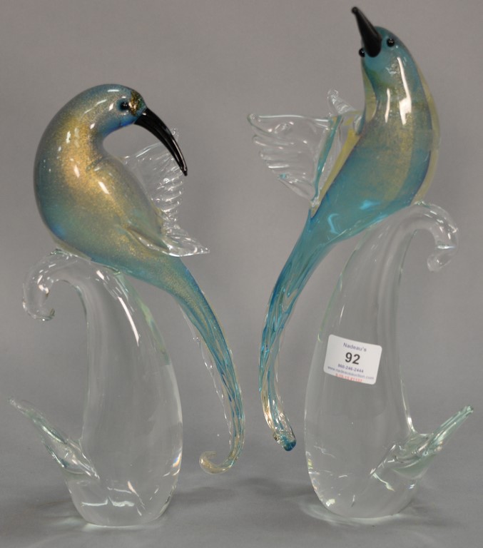 Pair of Formia Murano art glass birds of paradise. 11 1/2 x 13 1/2