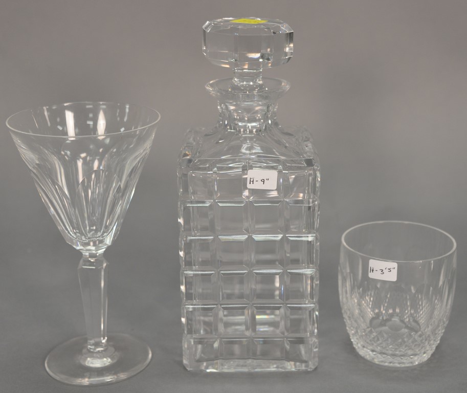 Large group of Waterford crystal to include a set of eleven stems, a set of four goblets, and a decanter. ht. 3 1/4 in., 4 3/4 in. & 6 in.