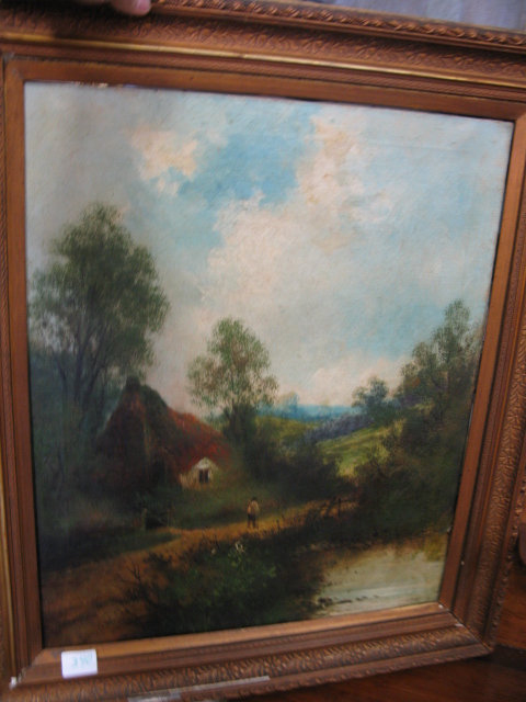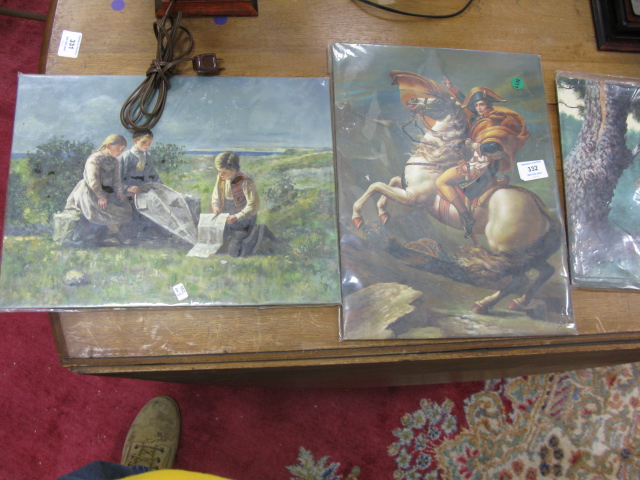 Three paintings on board probably copies 3 children in field, Napoleon on horseback and owl in pine tree.