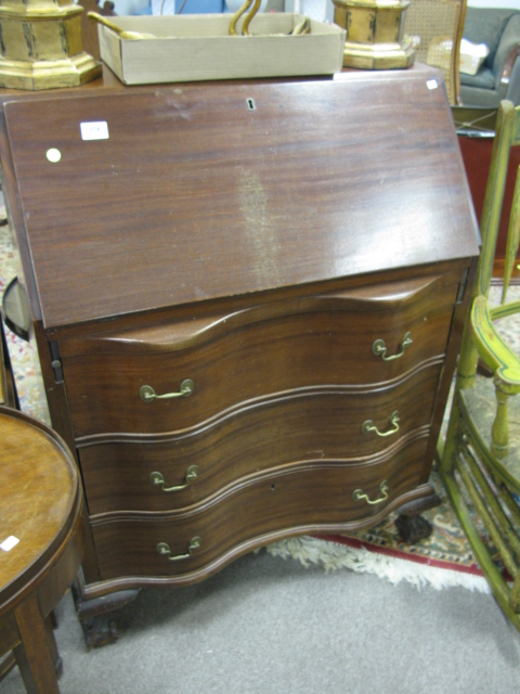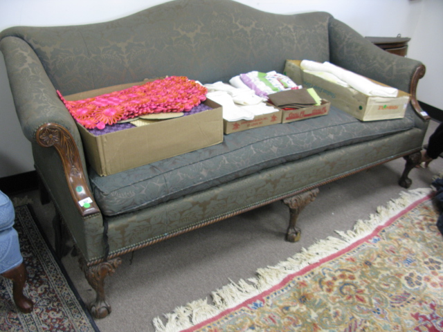 Chippendale style mahogany sofa with ball and claw feet one chip to one foot.