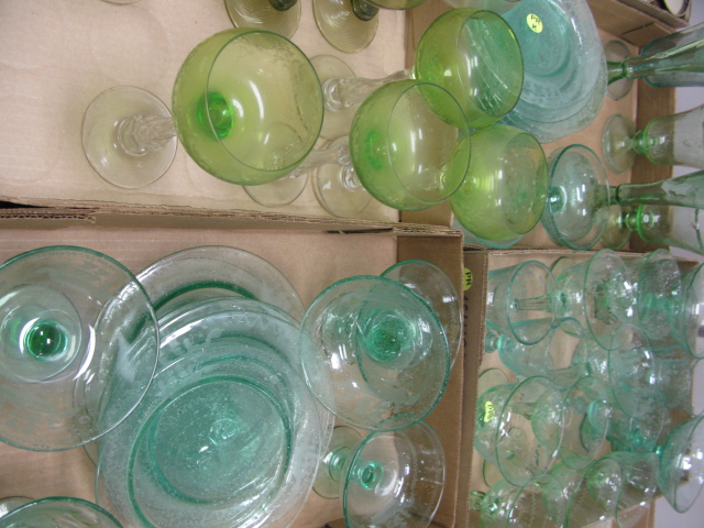 Four box lots of glassware including Venetian glass, stems and various plates and stemware and candlesticks.