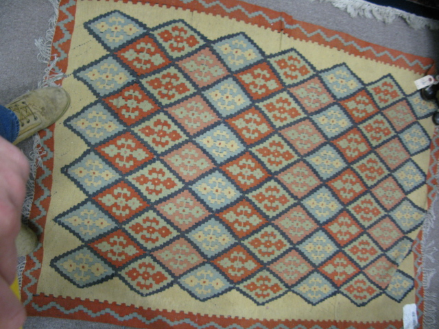 Five Oriental rugs Antique Bokara Oriental rug, Killam Oriental rug, a worn Oriental rug and worn Hamadan Oriental rug.