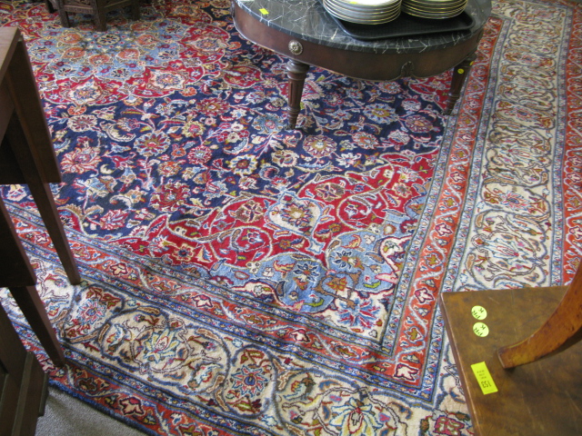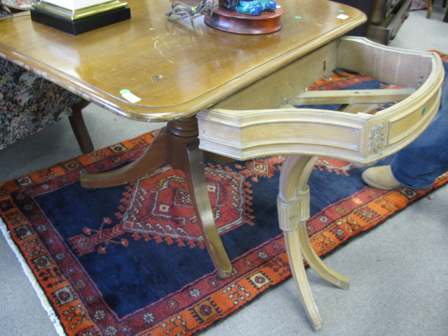 Walnut pedestal rectangular table along with console table marble missing from console table.