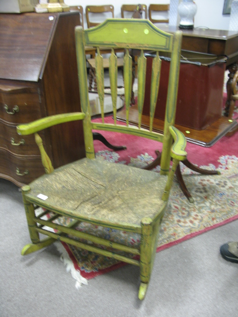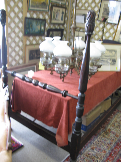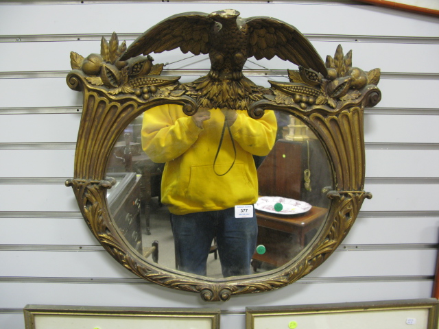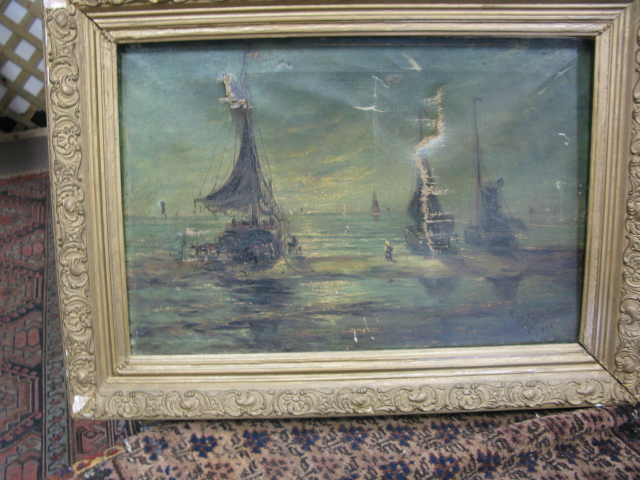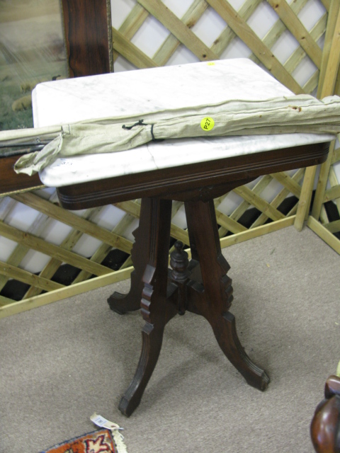 Victorian marble top table crack along with oval Victorian mirror and 2 fishing rods.