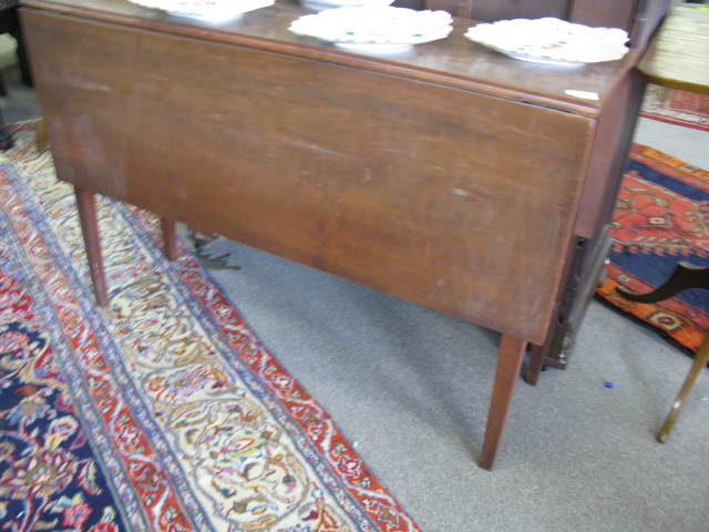 Mahogany Governor Winthrop style desk and oval inlaid occasional table.