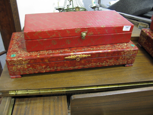 Two fitted boxes with enameled stems of various colors along with 2 flat boxes.
